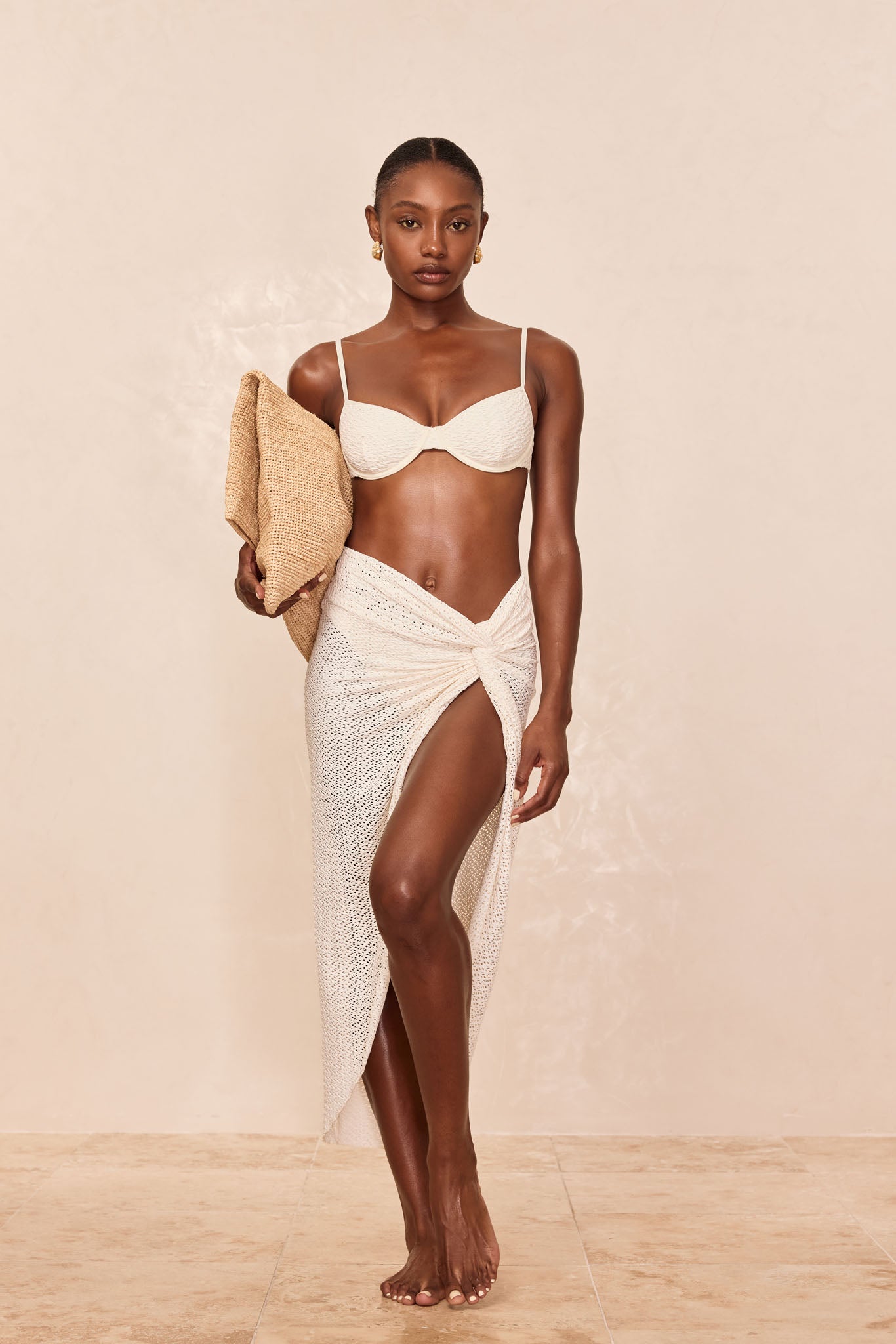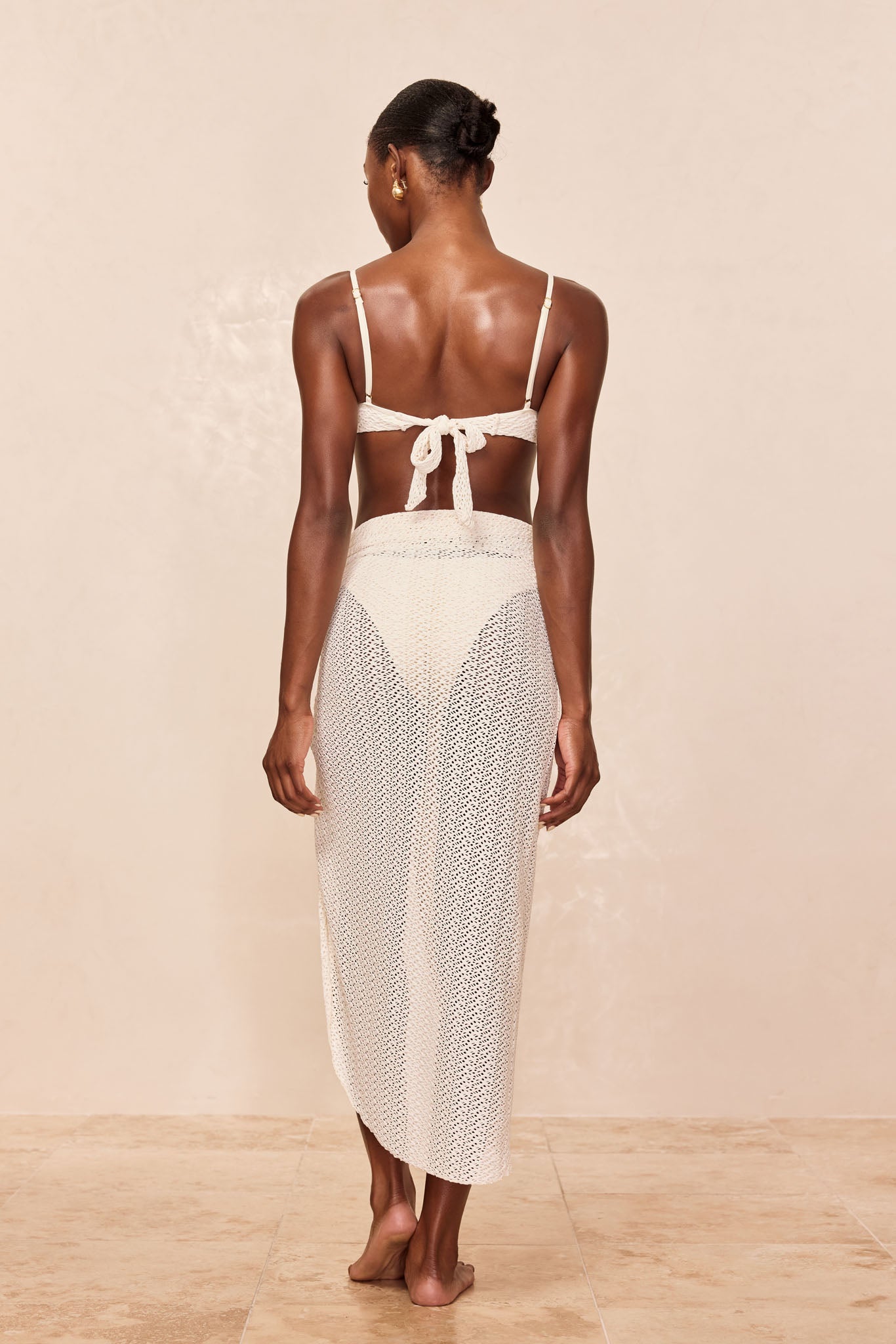 All eyes on you while wearing the Andros Sarong. Flaunting a high slit, knotted waist detail and effortless look, you’ll feel and look your best.