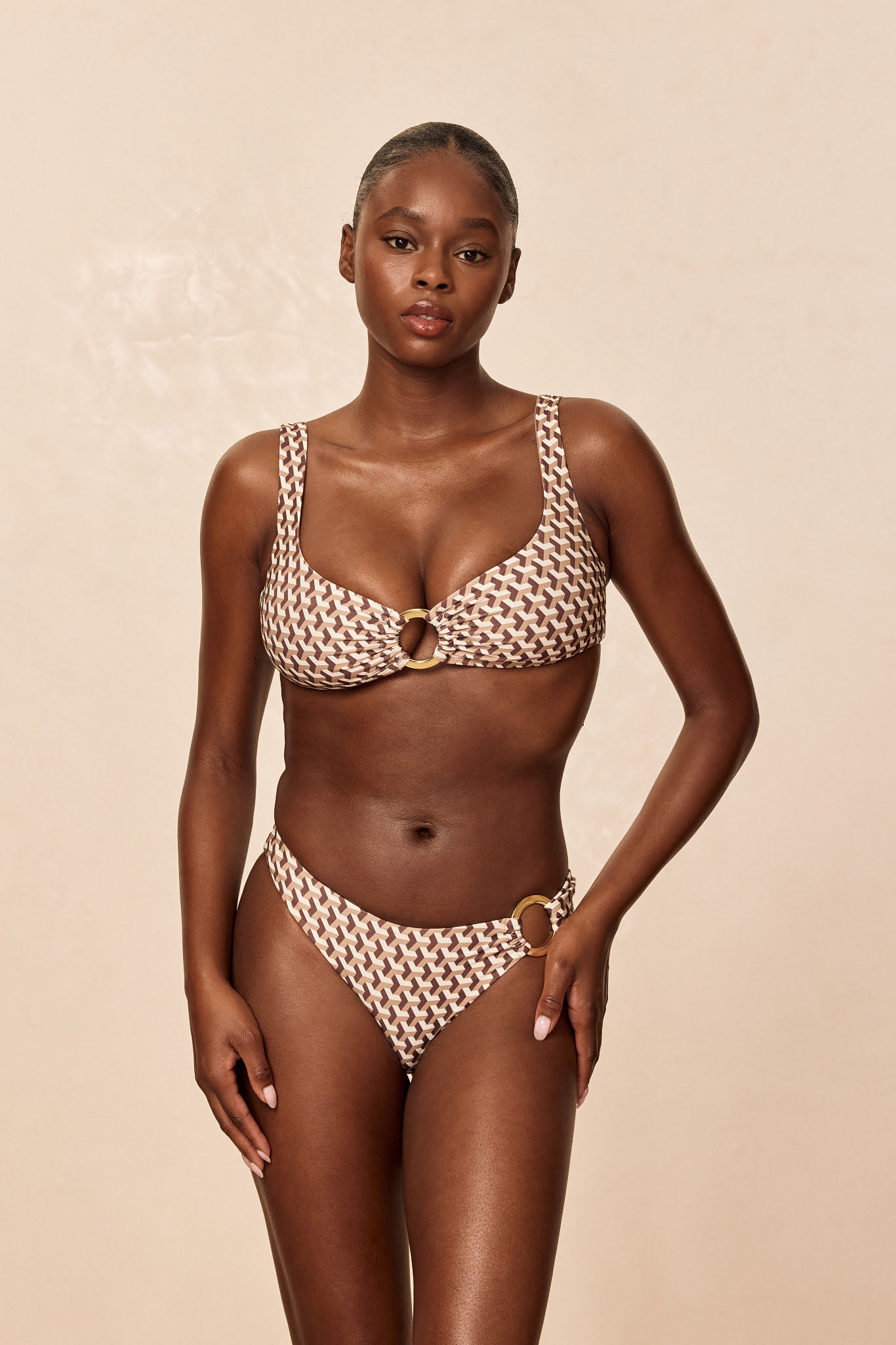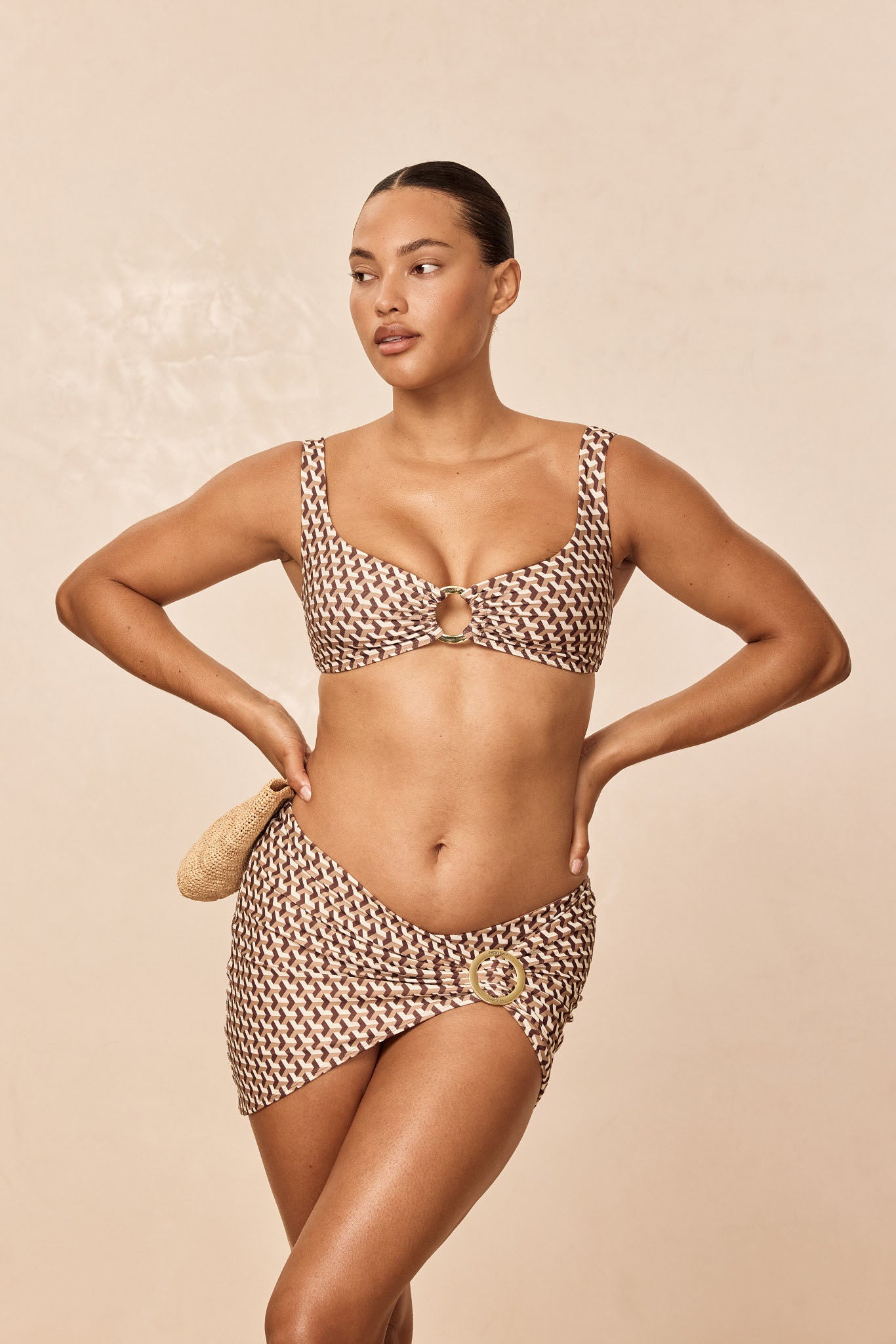 The Barbuda Top is your summer classic with a flirty twist. Featuring over-the-shoulder straps and an adjustable back tie, it offers a timeless fit that feels made for you. A gold ring detail at the front adds just the right touch of shine for sun-drenched days.