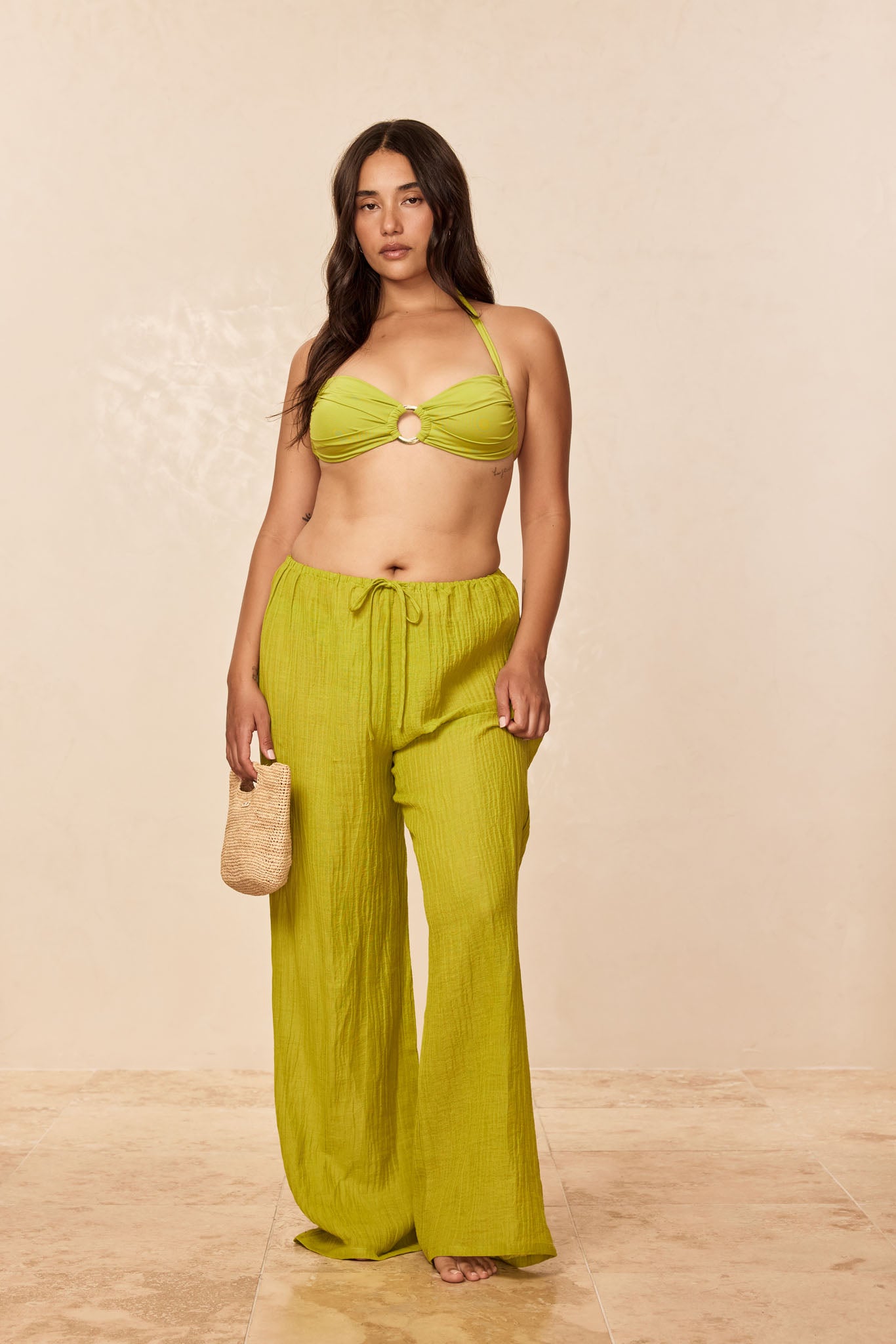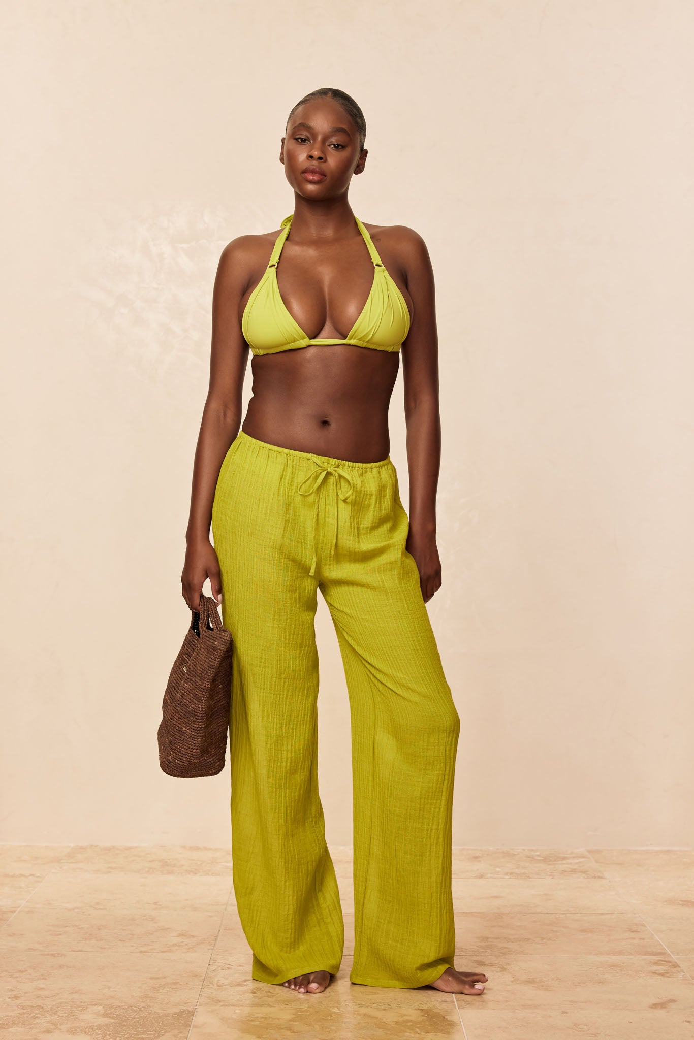 Simple and chic, the Belize Pant is the perfect beach pant you’ve been searching for. Designed in our light crinkle linen, this pant features an adjustable elastic drawstring waist, that allows you to wear this pant low on your hips or high on your waist.?