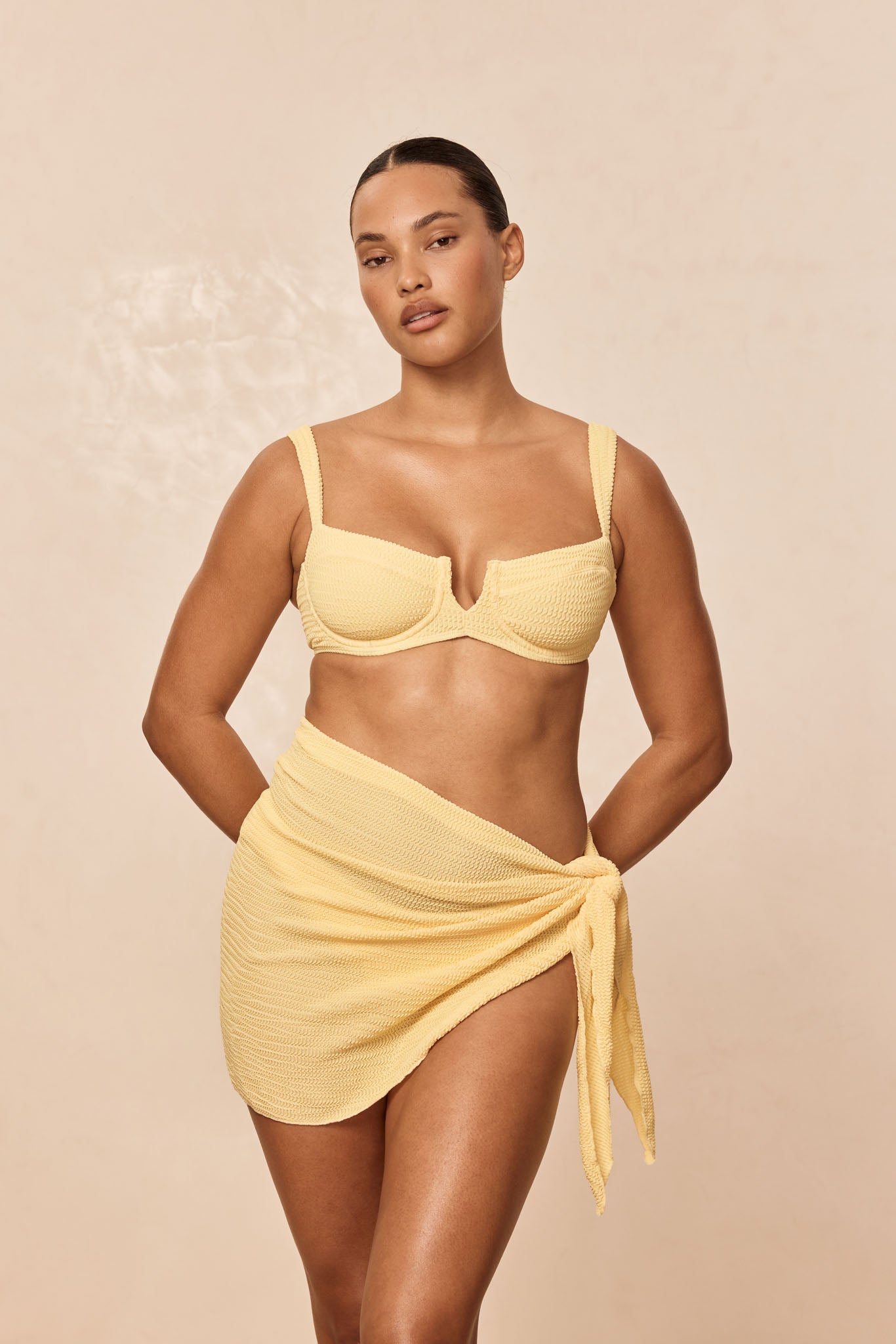 The Clovelly Top is one of our best sellers due to its flattering yet supportive design. This top features a built-in underwire that never digs, adjustable over-the-shoulder straps, and a tie back, allowing you to find the most comfortable fit for your body. Our super supportive and flattering crinkle fabric is fully lined and tailored to make you look and feel your best.