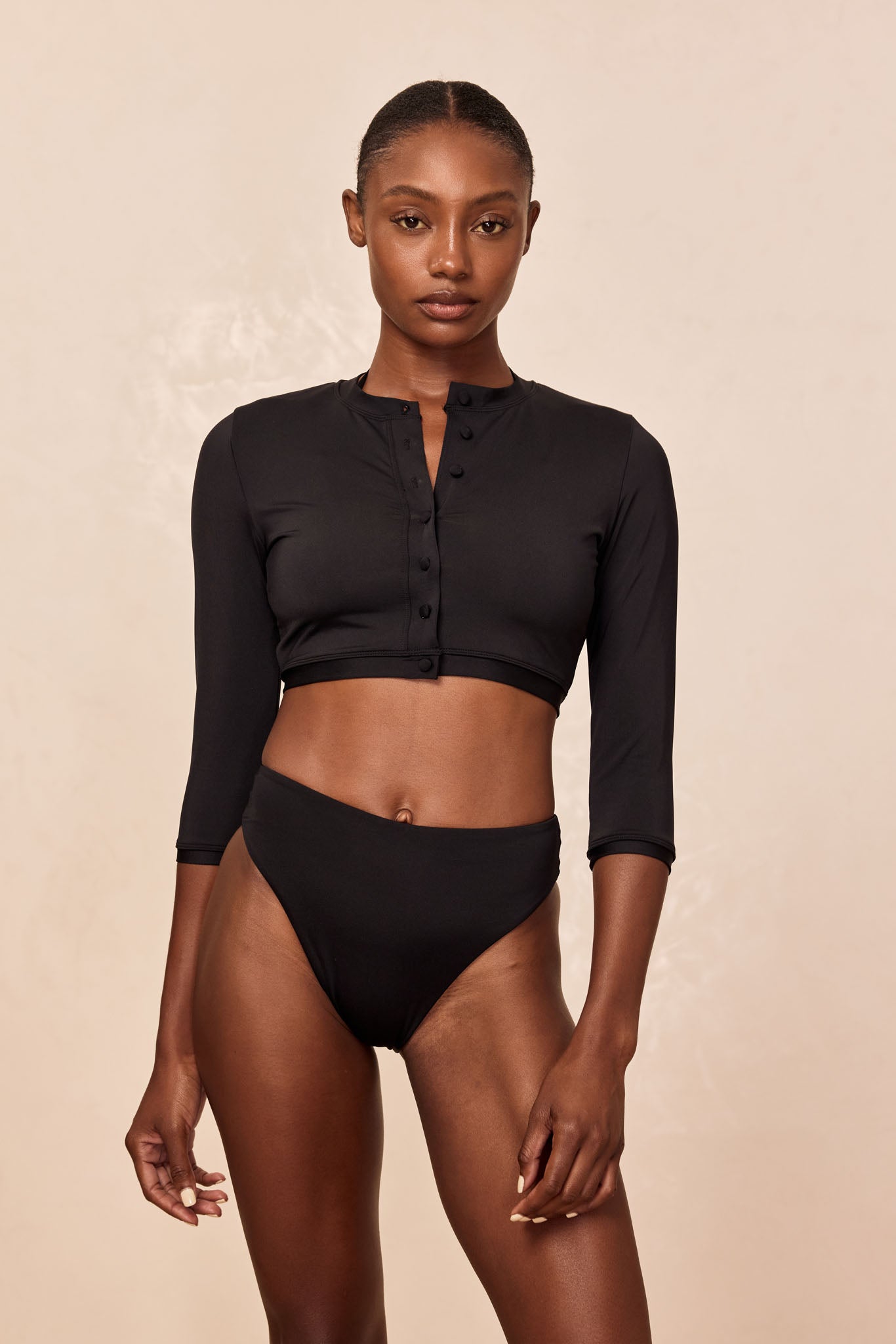 The Crete Swim Cardi is a cropped, button-up layer with ? sleeves and a soft lining for just the right amount of coverage. Toss it on post-dip or wear it as a top-it’s your new go-to from beach to beyond.