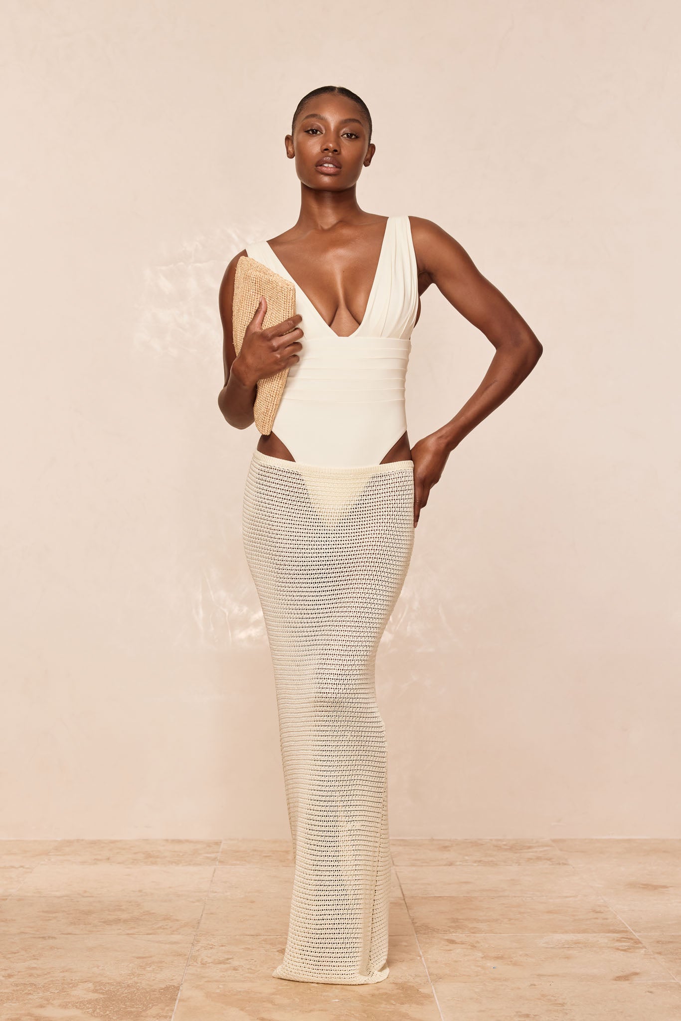 Equal parts sexy & supportive. Our Florence One Piece is the perfect combination of our best selling Aruba & Corsica One Piece. Designed for support and comfort this one piece features a supportive waist with the pleated detailing and wide shoulder straps. Finished with a flattering deep v-neckline and cheeky bottom coverage.?