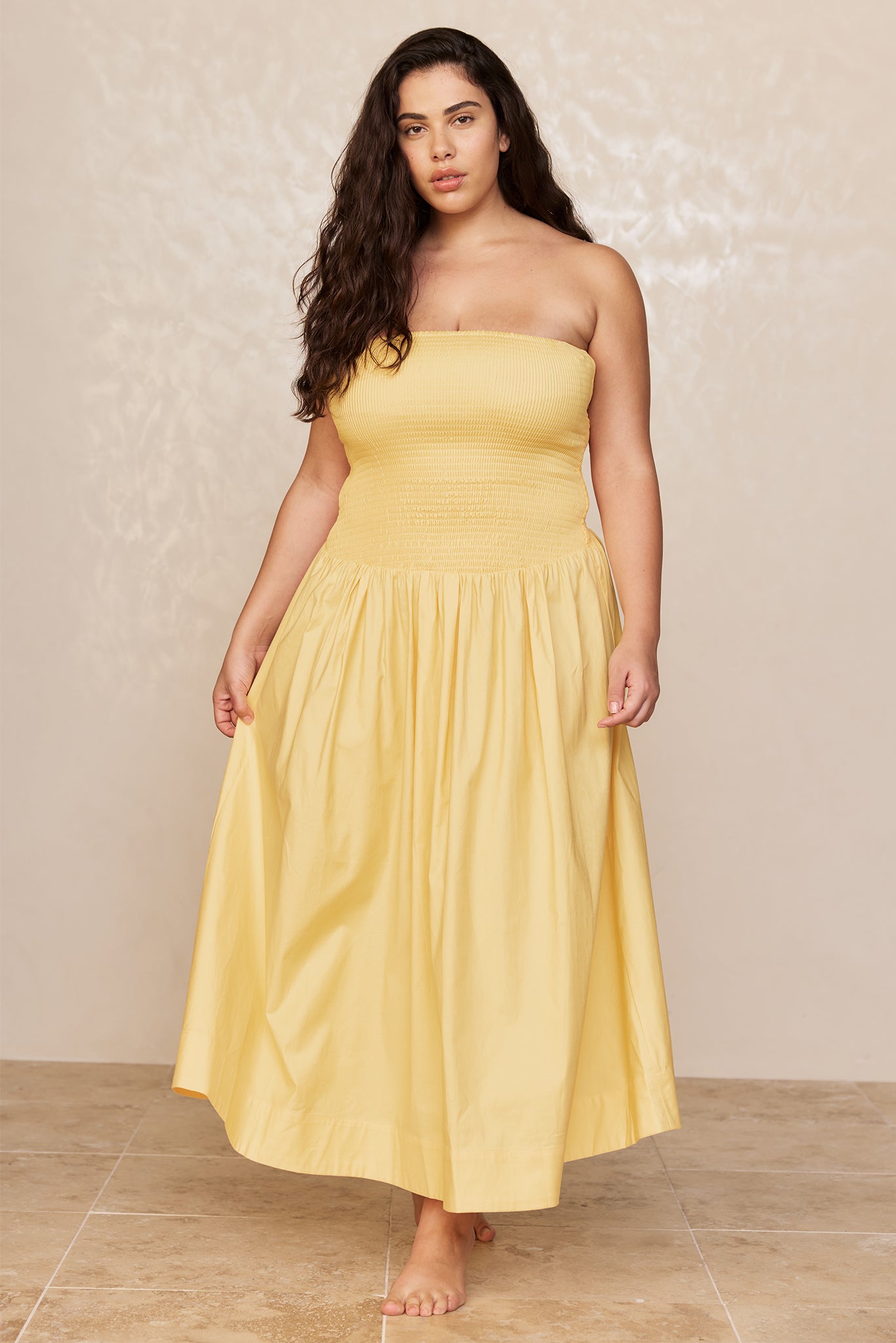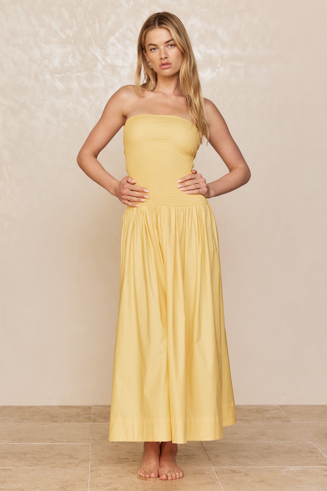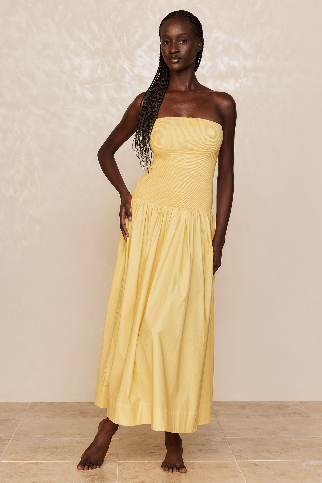 Effortless and feminine, the Rio Dress is your go-to one-and-done cotton look for warm-weather days. Designed with a flattering strapless neckline that offers both support and style, and an easy drop-waist silhouette that flows with ease, it blends charm and comfort seamlessly.