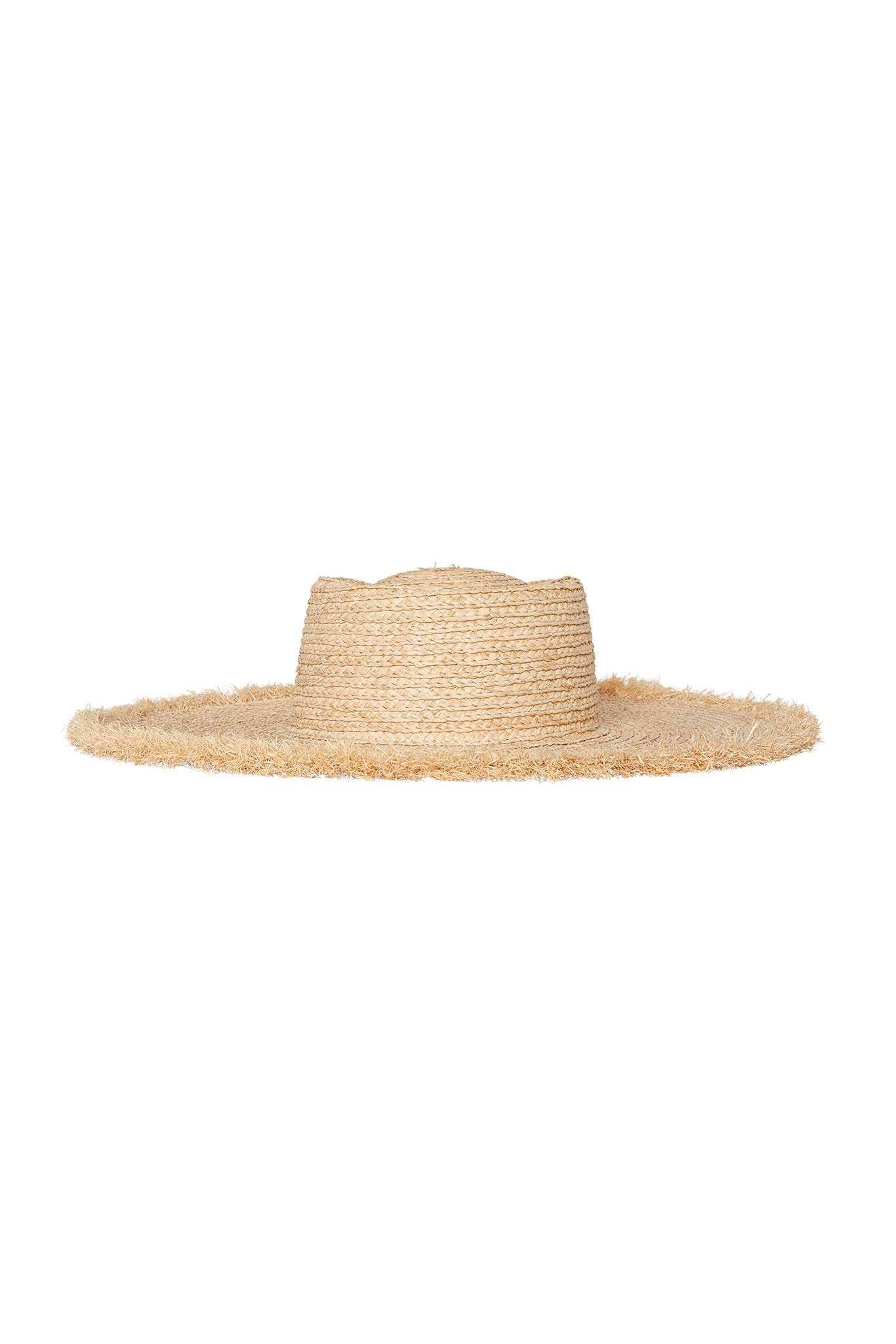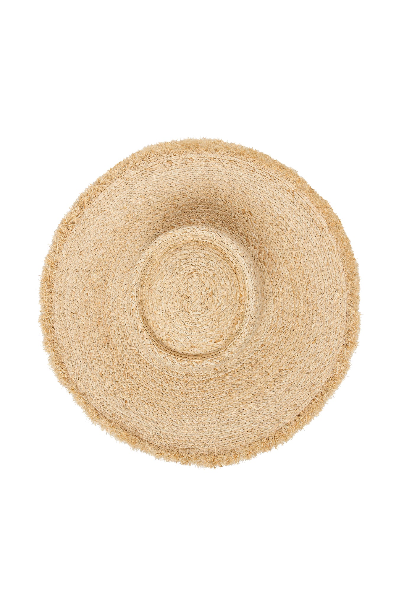 Features:100% straw materialBrim width: 4 1/2″Fray Length: 3/4″Circumference: 22 1/2″Cap Shape: FlatFrayed edge