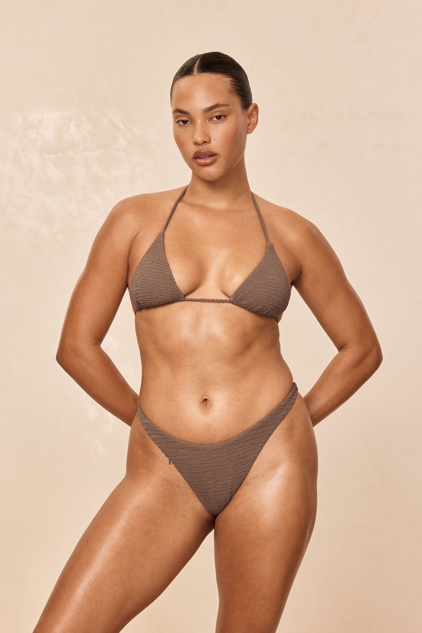 The Taormina Top is a sleek take on a classic triangle silhouette. Designed with thin straps, removable padding, and adjustable neck and back ties, it offers a barely-there fit with just the right amount of support. Finished with gold hardware details, it’s effortlessly feminine and made to turn heads in the sun.